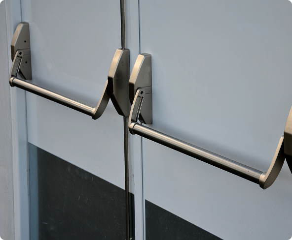 Our range of emergency exit and panic hardware allows for swift exits in case of emergency or panic whilst ensuring security from external access.